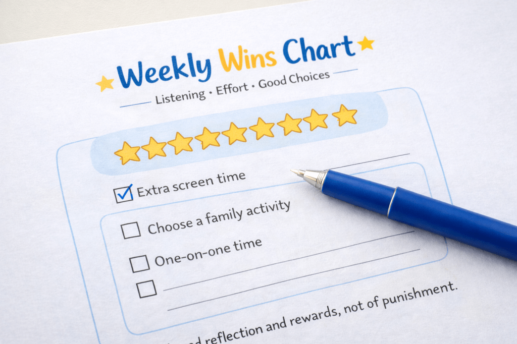 At the end of the week, those points turn into something agreed in advance. Extra one-to-one time. Choosing a family activity. A small, meaningful reward.