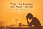 (A Realistic Mindset Shift for Tired Parents) This isn’t about what evenings demand of children. It’s about what I stop demanding of myself as a parent after 4pm. By that point in the day, a lot… Read more: What I Stop Expecting From Myself After 4pm - The Hour Between School and Bedtime Is Not Built for Peace